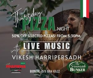 5 (1) Thursdays are for pizza… and a little something extra Join us at Mamma Luciana for half price pizzas from 5:30pm, paired with the sounds of live music by Vikesh Harripersadh. Good food, great music, and that warm Mamma atmosphere, exactly how your week should be breaking. Book your table and make a night […]